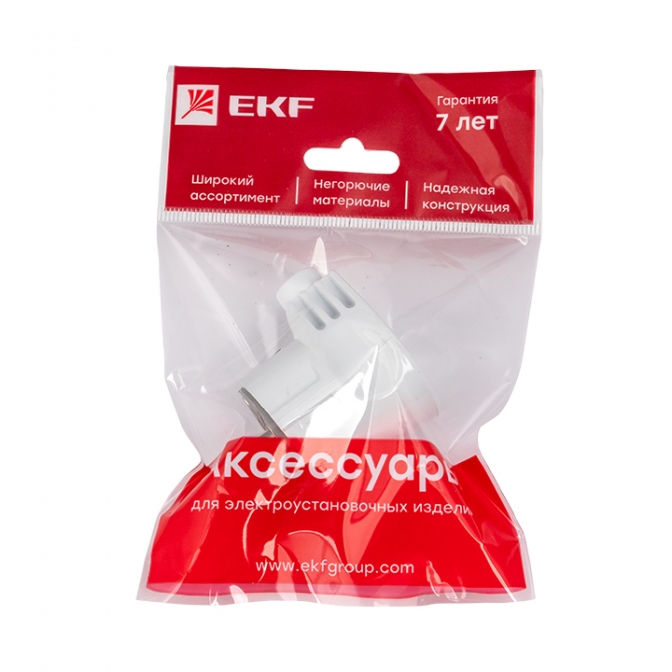 | Наименование в прайсе производителя | Вилка угловая усиленная с заземлением белая 16А 250В Proxima ЭКФ | |