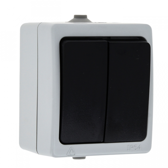 | Наименование в прайсе производителя | Венеция Выключатель 2-клавишный 10А IP54 серый ЭКФ | |